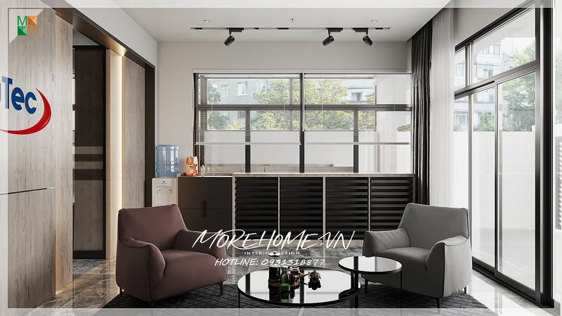 Mẫu thiết kế văn phòng tiếp khách hiện đại với cách bố trí nội thất khoa học, tiện nghi