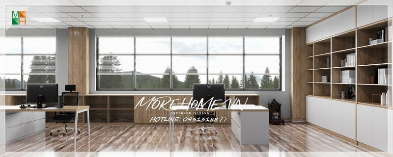 Mẫu thiết kế văn phòng làm việc hiện đại sử dụng gỗ công nghiệp cao cấp làm đồ nội thất