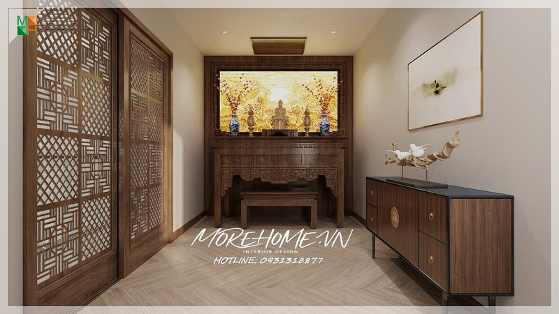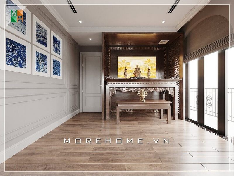 Không gian phòng thờ chung cư rộng rãi đòi hỏi sự tinh tế về các yếu tổ thẩm mỹ mà còn cả sự cẩn thận trong các yếu tố phong thủy.