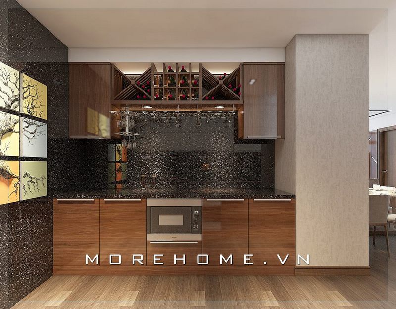 Nếu bạn sở hữu căn hộ chung cư có diện tích nhỏ, đừng bỏ qua mẫu thiết kế tủ bếp gỗ chữ i đẹp này nhé