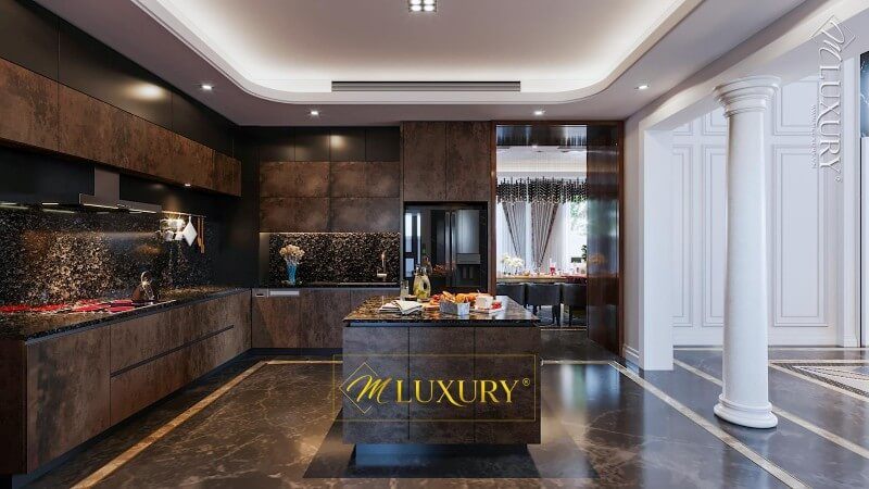 Thiết kế tủ bếp hiện đại, cá tính với gam màu nâu chủ đạo, đây là gợi ý không tồi cho các căn hộ chung cư, biệt thự cao cấp đâu nhé