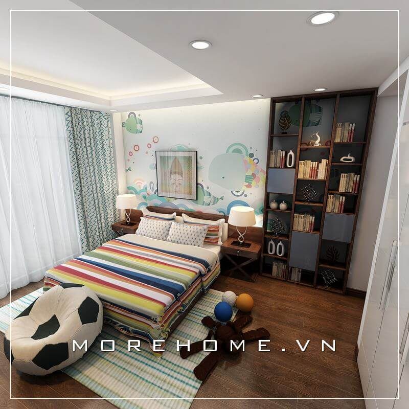 Giường ngủ trẻ em được thiết kế theo phong cách hiện đại, kết hợp tab đầu giường đầy tiện nghi trong quá trình sử dụng