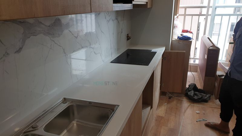 Đá ốp bàn bếp là một sự lựa chọn hoàn hảo với những ưu điểm đẹp sang trọng, mịn màng giúp các mẹ có thể lau chùi dễ dàng hơn và cung cấp sự tiện nghi.